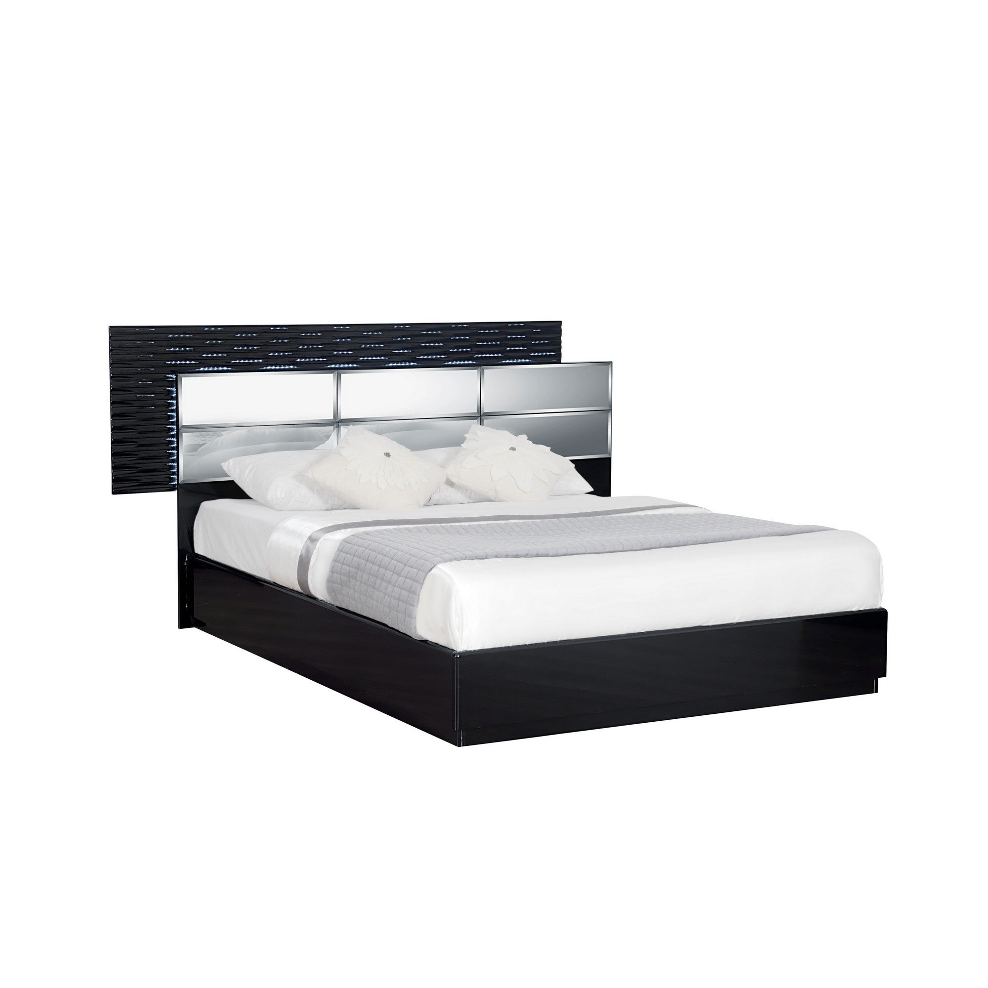 Modern Black King Bed with Headboard LED lightning Smoked Mirrored Panels
