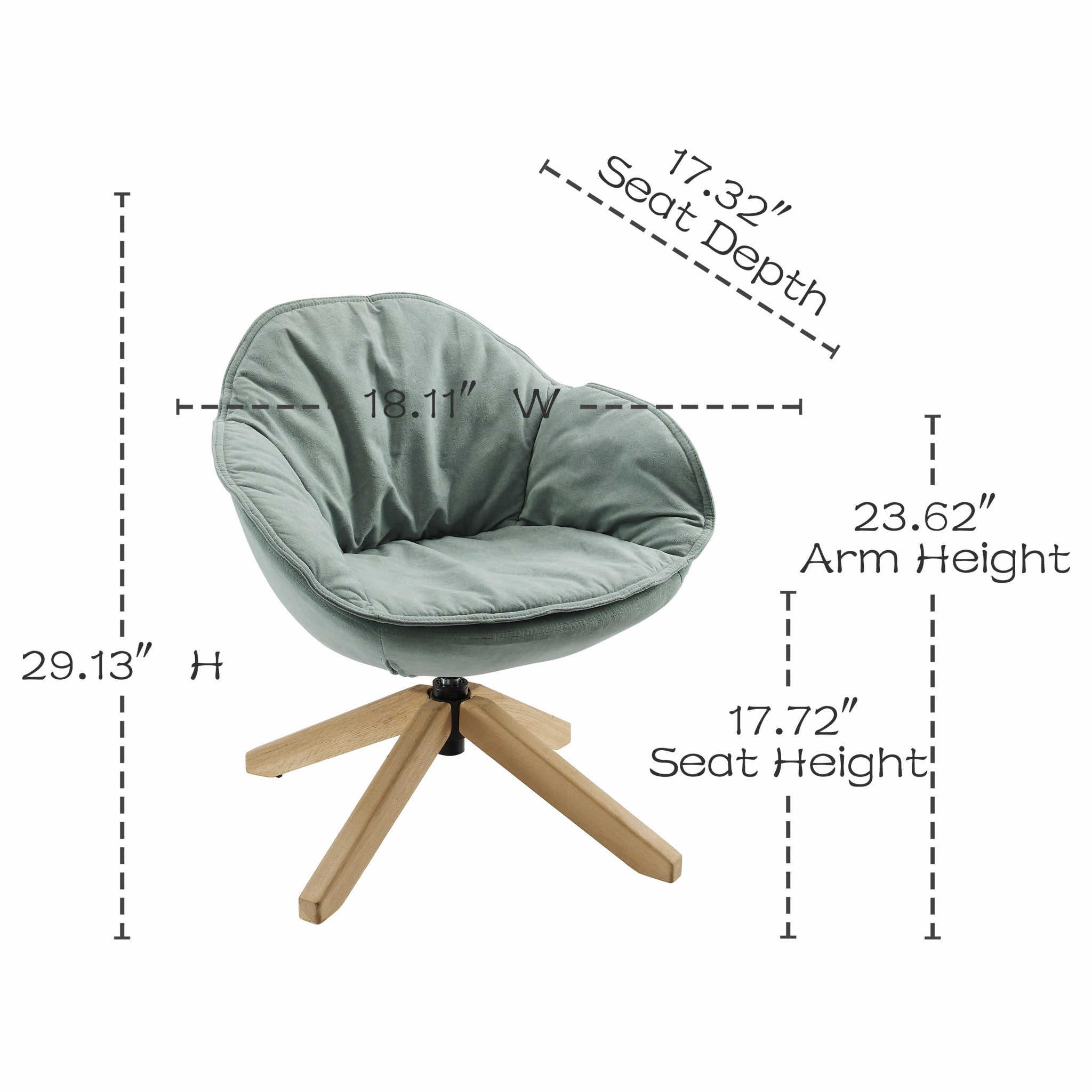 Highlight your modern style with this statement piece and make an emphasis to reach the next level with our Modern Celadon Home Office Accent Chair. Its celadon loose fabric seat design and its solid wooden frame will perfectly make the right impression and provide an eye-catching graceful beauty in your entryway, living room, or bedroom. The removable soft fabric seat design and wood oak frame are designed fashionably and purposefully to make a big impact on your space, as well as to provide a durable chair with a 360 degrees swivel function that will last long. If you want to give a modern touch to your interior design, this swivel accent chair"s decorative design will surely bring flair and update your space. 29.13” X 28.35” X 25.6”
