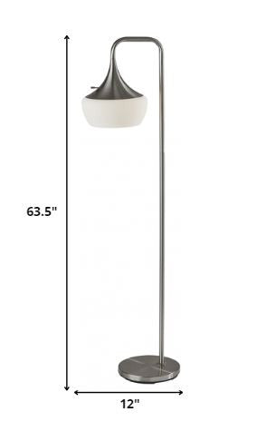 This floor lamp is sure to stand out in your home with its gnome hat inspired mixed material lampshade. The options are endless with this chic, classy style. Brushed steel metal is mixed with an alabaster frosted glass shade. A convenient 3-way rotary switch is located on the shade cup. The 3-way rotary socket switch will only work with a 3-way light bulb, otherwise this lamp will function with simple on/off switch at its highest setting All lighting product is either UL or ETL listed, meaning that it has been tested and approved to meet the government-regulated safety standards for the USA.