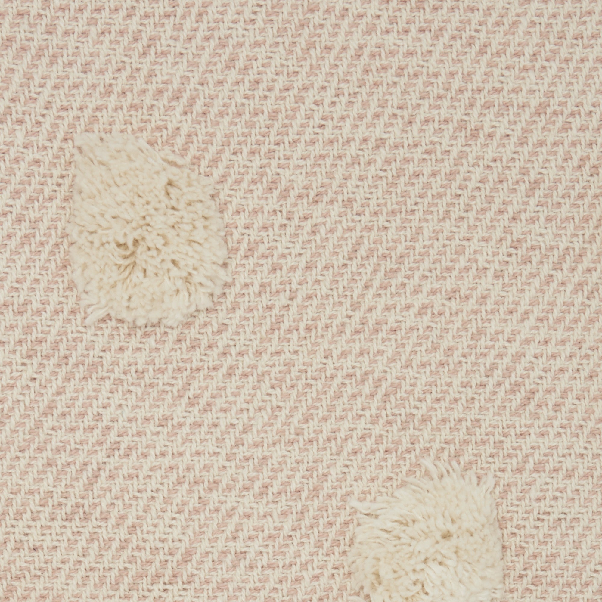 A decorator's dream, this gorgeous Boho Pale Blush and Ivory Big Pom Cotton Throw Blanket will add designer coziness to your space in an instant. This handmade incredibly soft cotton blanket has a delightful weave that incorporates ivory and color for just the right design. There are large circular 3D super soft Ivory cotton poms sewn on that give this throw a unique and high end touch. The neutral coloration makes this accent easy to style and place in most any interior. Warm and soft to be used as a blanket or decorative accent drapped over your favorite chair, couch, or bed. 0.5" x 50" x 60"