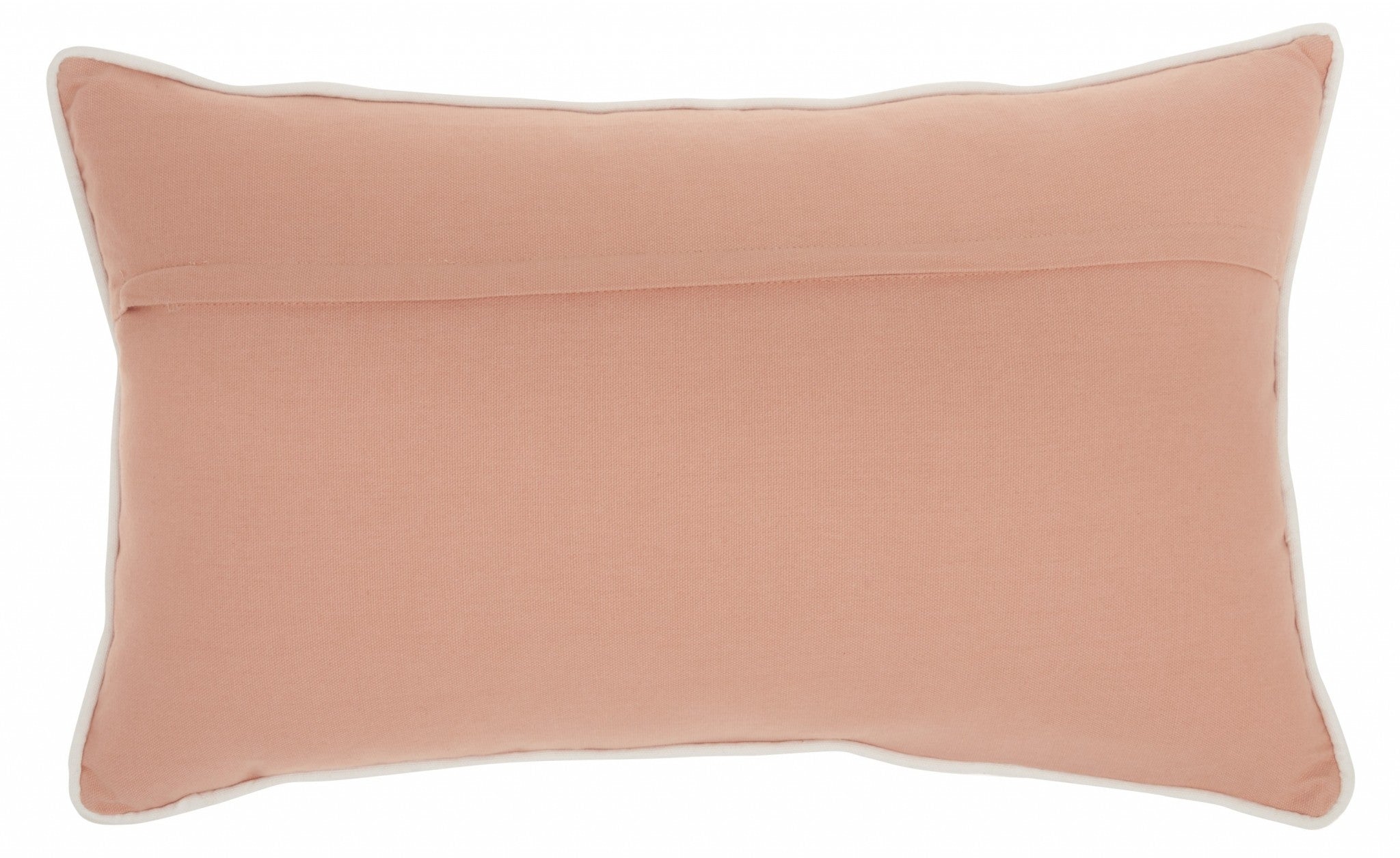 This Pink Lumbar Pillow with Center Pattern is the perfect mix of comfort and design and will invoke a sense of whimsy in any space of your home. This rectangular shaped lumbar pillow is covered with a soft and luxurious pink fabric. The minimal background is elevated by the center stripe with has a small dash design in a white color. This lumbar pillow will help make any couch or chair more comfortable for you to sit on and add a touch of minimal design as well. 5" H x 12" W x 20" D