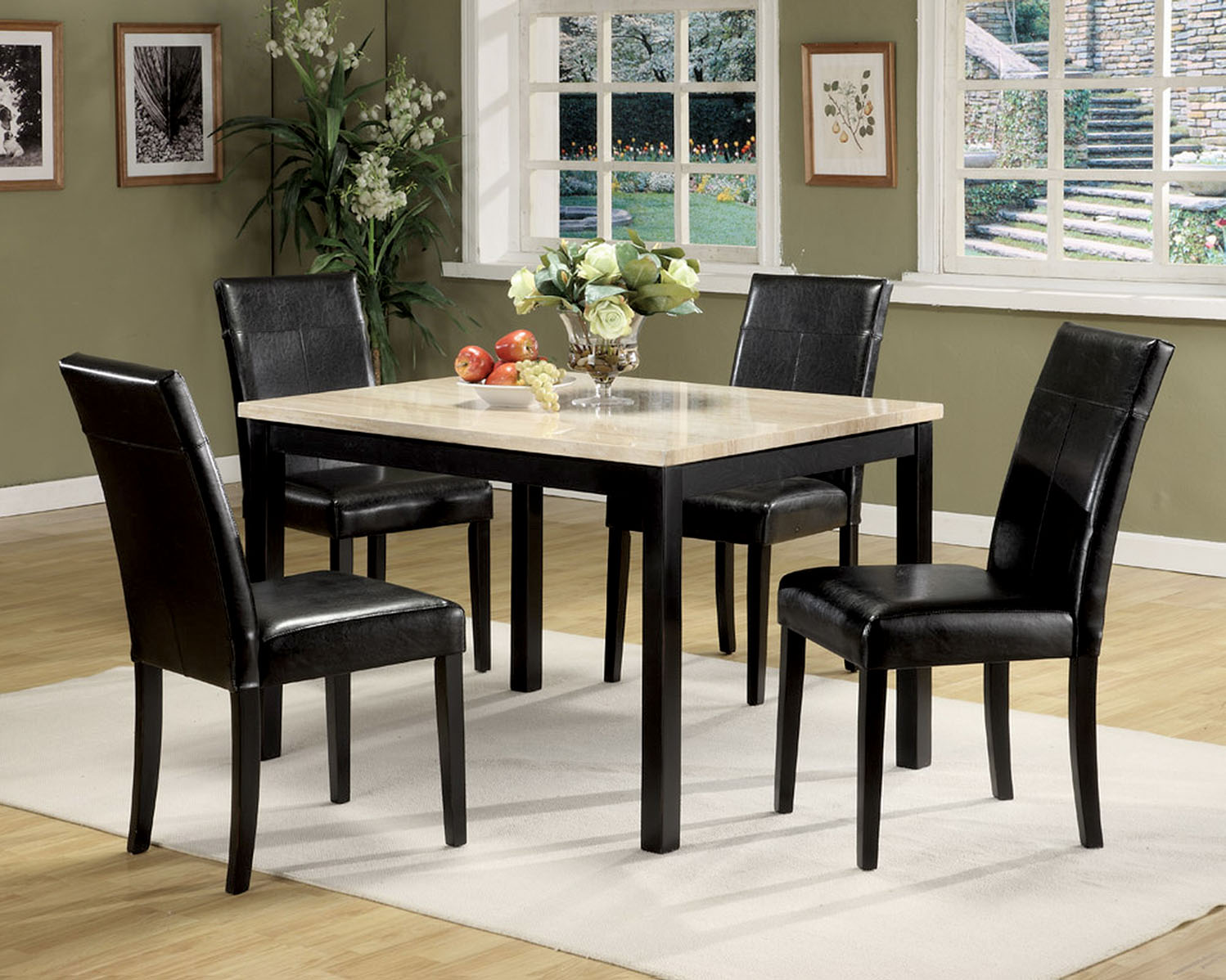 Portland 5Pc Pack Dining Set, White Faux Marble & Black