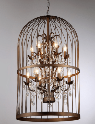 Create a focal point in your room with this striking chandelier that resembles a bird cage. This eye-catching piece is crafted of sturdy metal for extended use and features a warm antique-bronze finish for a luxurious look. Designed to accommodate 12 bulbs on two rows, this chandelier brings bright, multidirectional lighting to your space.