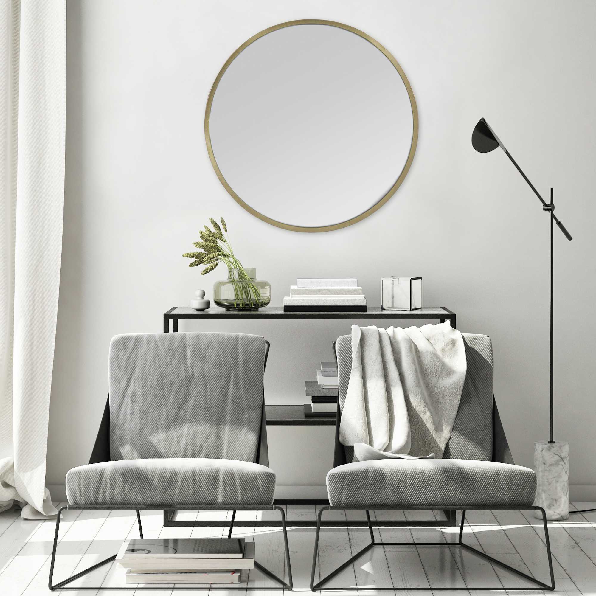 Elevate your living spaces interiors! Mirrors are delightful pieces to have in your home. They can make any area feel more spacious and well-lit instantly. So, imagine having our mirror with a textured frame and matte gold finish. Your home will definitely look and feel more luxurious! Add a touch of elegance and class to your home with this round mirror. Specially made with 60% mirror, 30% metal and 10% MDF to last for longer. Every inch of this decorative accessory has been carefully checked to ensure you get the finest quality. Our mirror perfectly measures in at 35.50 X 1.25 X 35.50, making it a fine addition to spaces of any size and style.