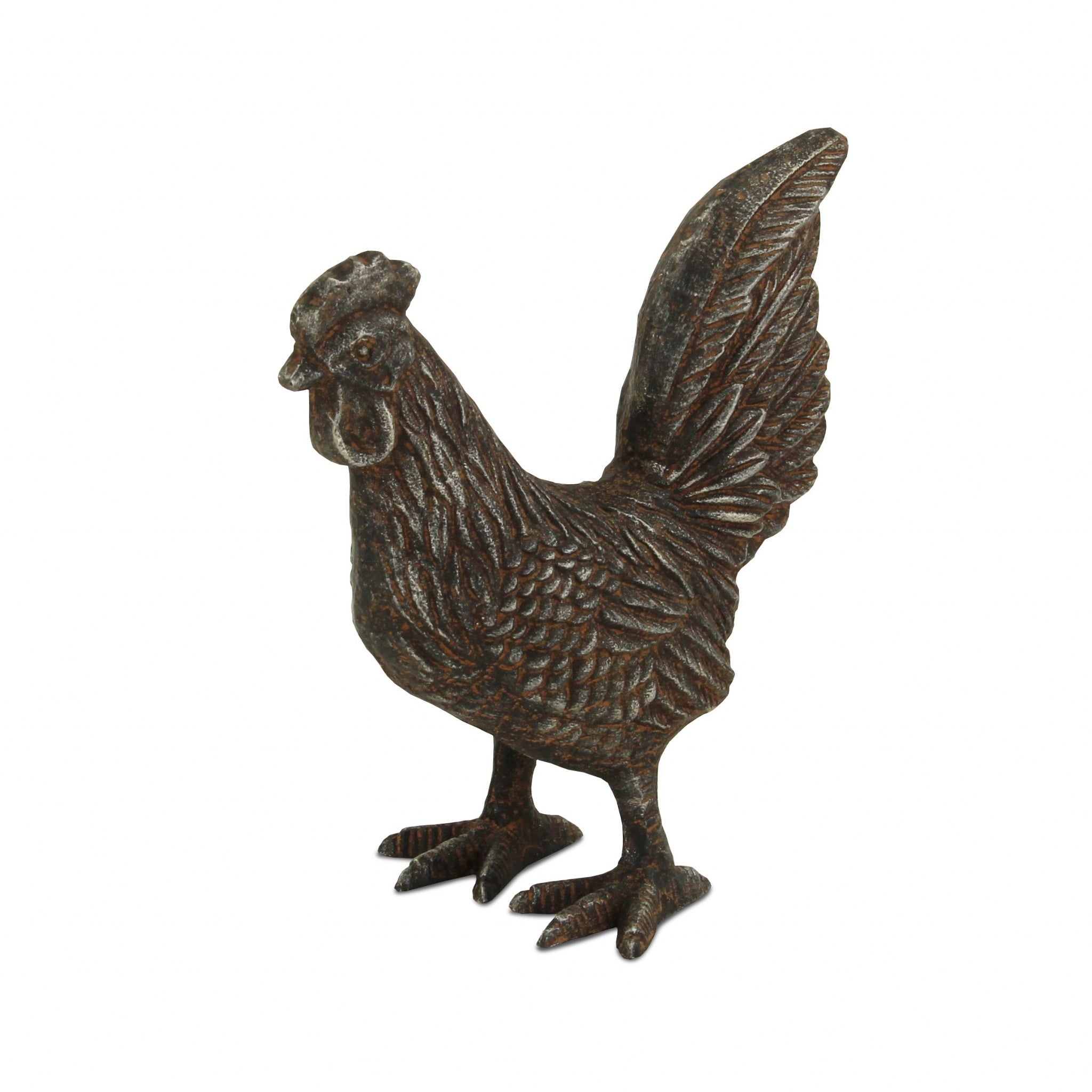 Rustic Gray Cast Iron Rooster Sculpture