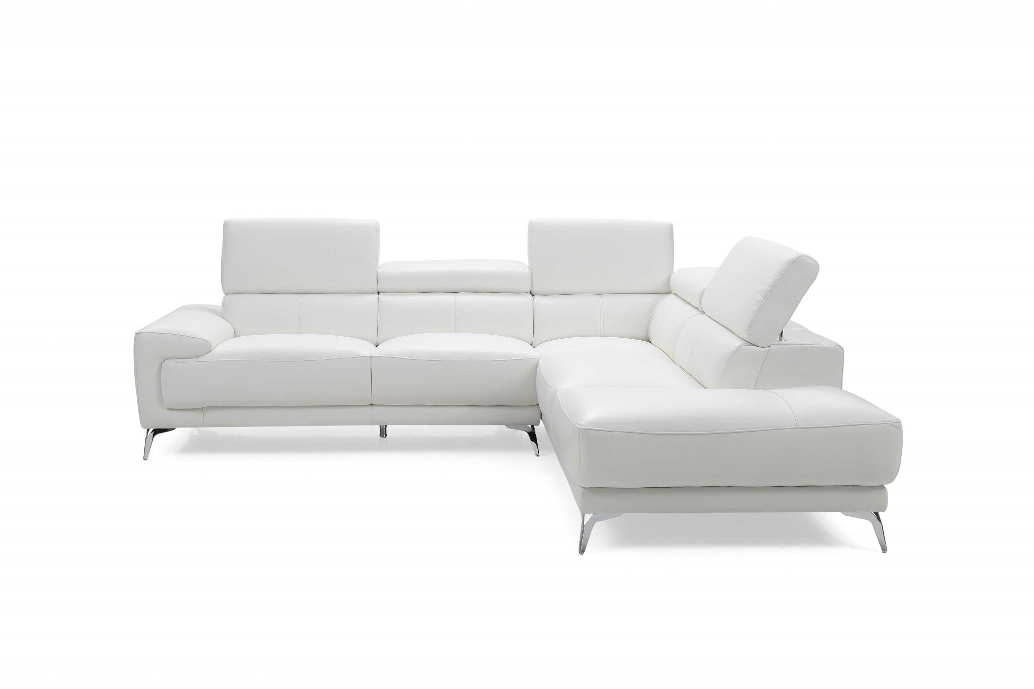 introduce a contemporary charm in your home with this right arm facing sectional. featuring top grain leather upholstery, dense foam cushioning and adjustable headrests, this sectional provides a comfortable sitting experience for family and guests. built to last with the best of materials, you can purchase it with full confidence that it will serve you for years. it rests on stainless steel legs and its white finish brightens the look and feel of your decor. minimal assembly is required.
