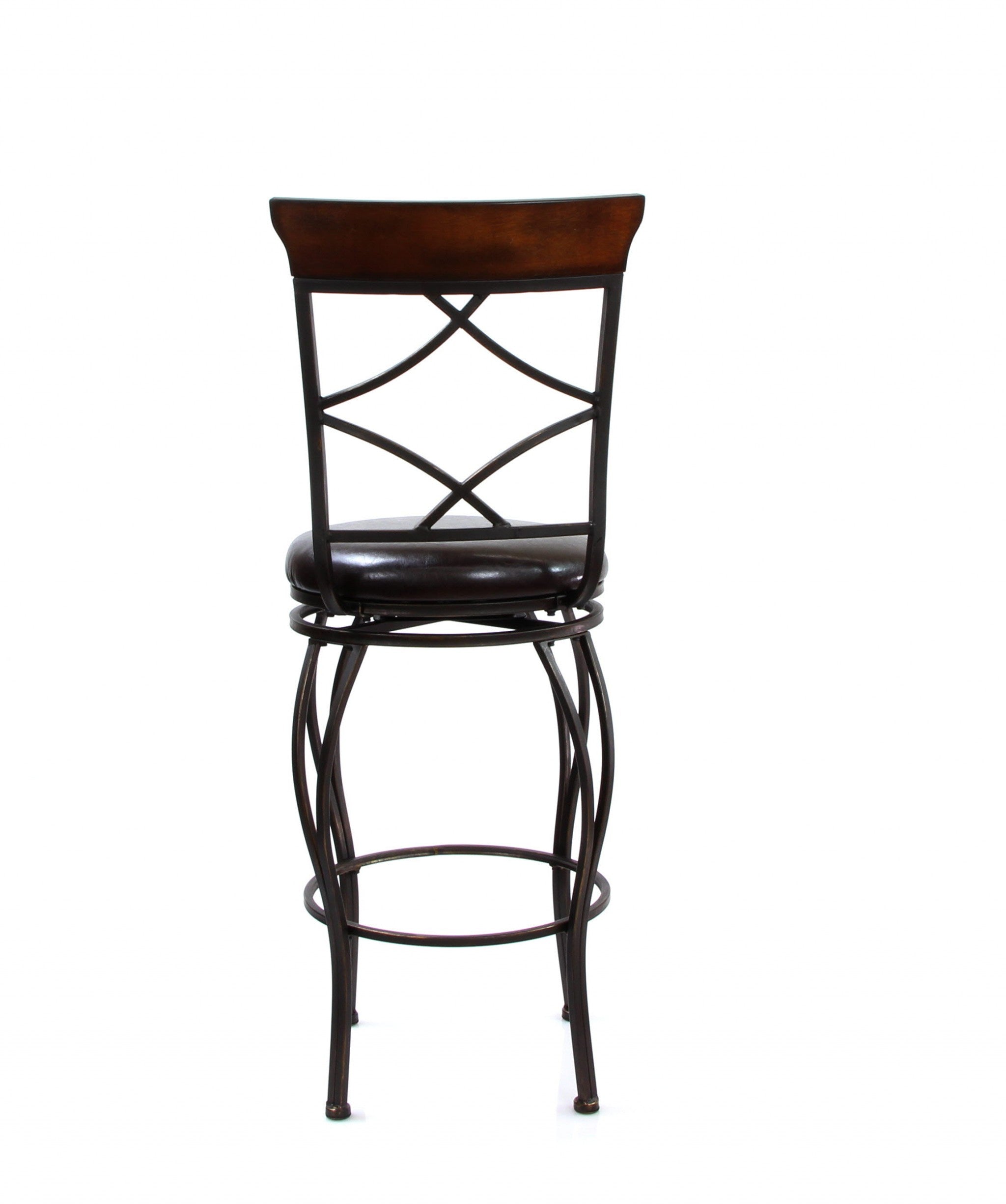 Set of 2 - 46' Antiqued Black and Cherry Finish with Espresso Faux Leather Seat Swivel Bar Chairs