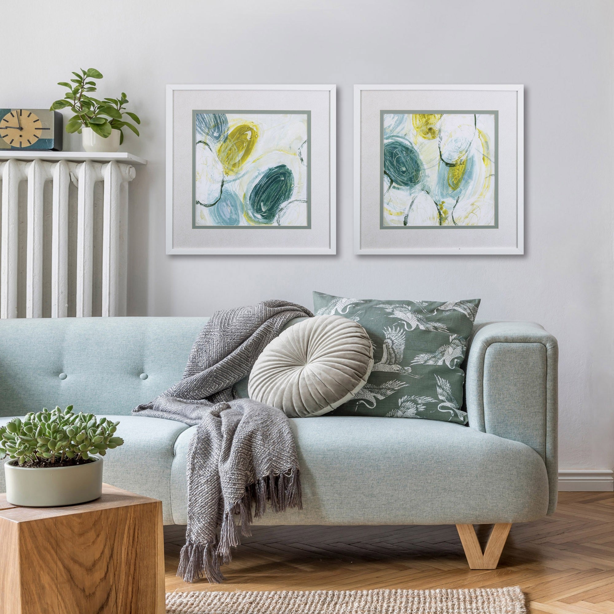 This pair of Abstract Diodes Abstract Framed Art will be a great accent for your favorite space. Position together or separate, these abstract images complement each other, come double matted and framed under glass, bordered in high-quality white frames. Ideal for contemporary or modern decor or anywhere you are looking for unique and colorful shades, these art prints will make a perfect way to liven up your space. 24" x 24" x 1" each. Set of 2