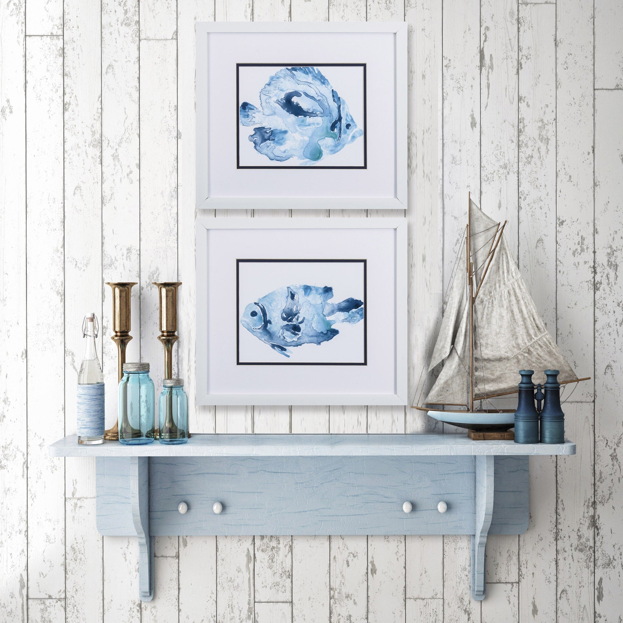 This pair of gorgeous Blue Watercolor Fish A Framed Art will be a great accent for your favorite space. Position together or separate, these abstract images complement each other come double matted and framed under glass, bordered by high-quality white frames. Ideal for coastal decor or anywhere you are looking for shades of blue and white, these watercolor ocean fish make a perfect way to liven up your space. 14" x 16" x 1" each. Set of 2