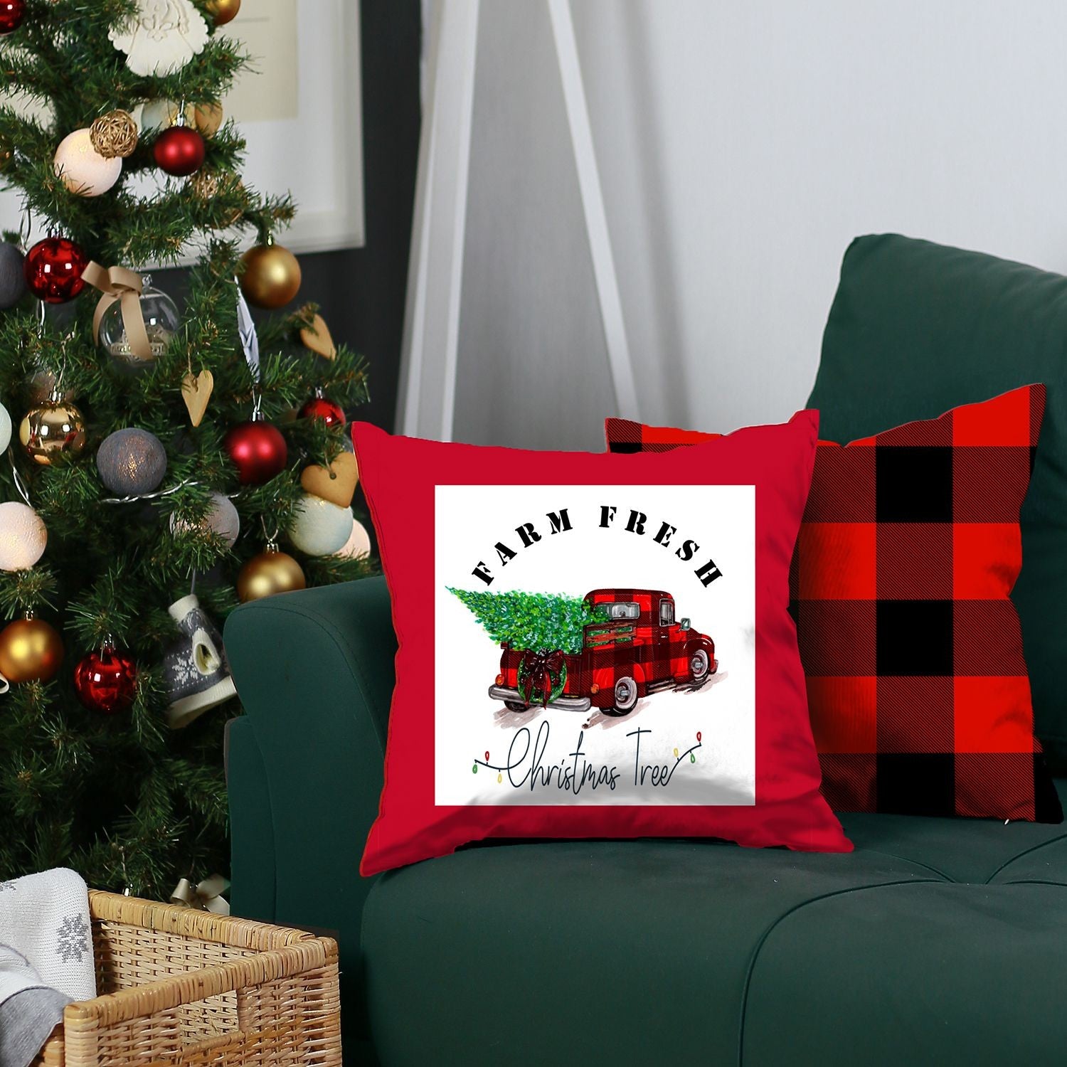 Bring some Christmas fun and folly to your space with this mixed set of Christmas Buffalo Check Pick Up Truck and Red and Black Buffalo Check Printed Throw Pillows. Crafted in a super soft brushed polyester, this square accent pillow has high-quality digital printing on the front while the backside is a solid natural color. There is a hidden zipper closure that gives a clean and seamless look all the way around. The removable and super soft pillow insert is filled with high-quality polyester that is designed to resist clumping and matting to provide maximum comfort and softness. 18" X 18". Set of 2.