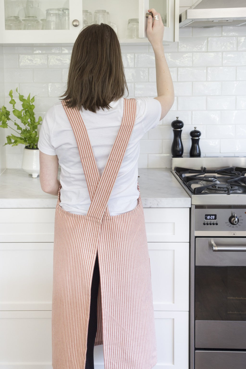 This set of burnt orange striped apron and oven gloves will add the perfect finishing touch to your kitchen setup. The set comes with an apron and two oven gloves all featuring neutral colorways that will work with all interior styles. The apron has a burnt orange striped pattern on it with two front pockets, shoulder straps and a tie-back. The front pockets are big and spacious allowing for better storage and convenience. The oven gloves feature a fun burnt orange bumble bee pattern that compliments the apron very nicely. All of the items are made from recycled cotton and will not fade or weather down due to repeated washing or usage. This set is great for gifting purposes as well as for personal use. 38” H x 31 W x 1” D