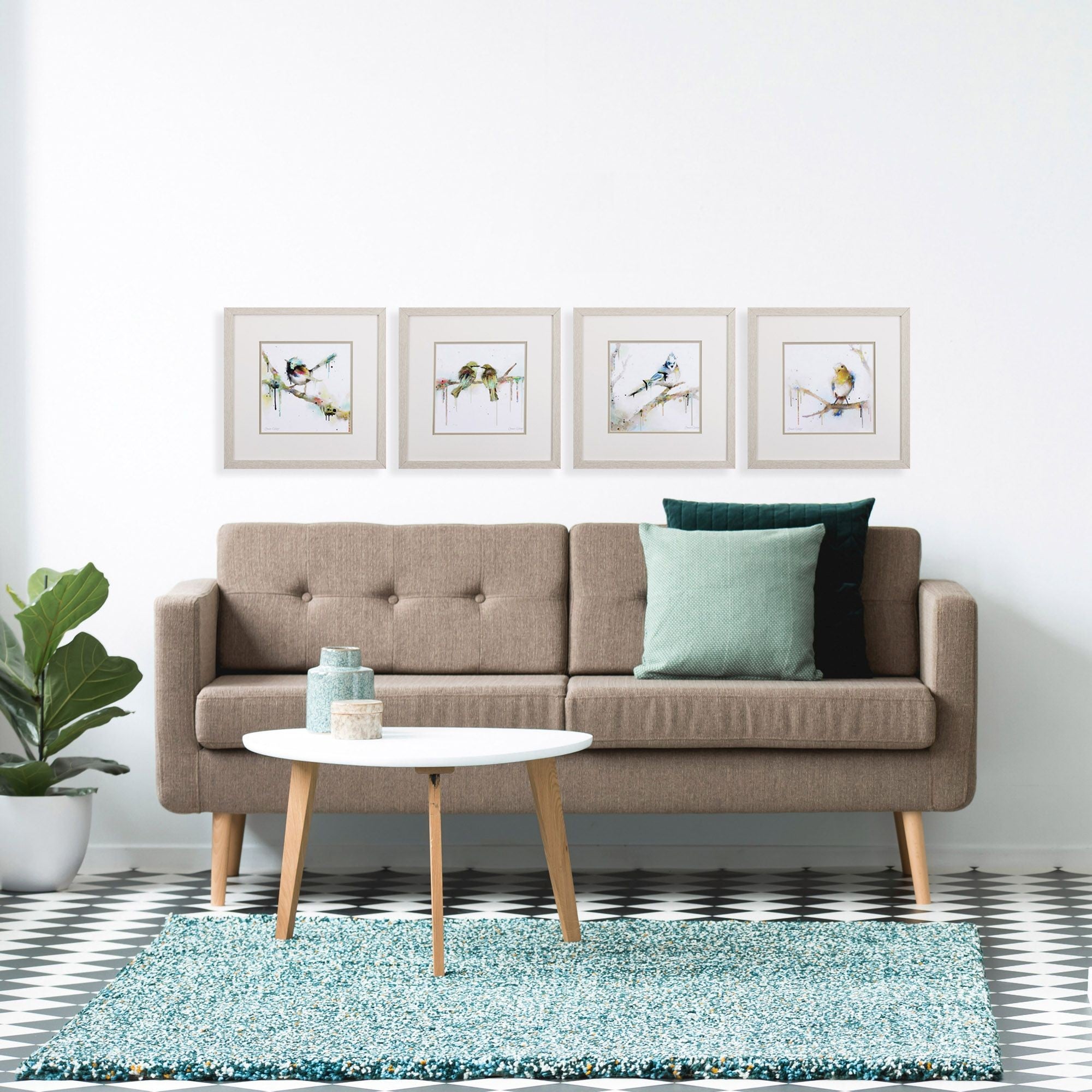 Add some color and visual interest to your space with this set of Colorful Birds on Branches Wall Art. Double matted, framed under glass, and complete with a distressed white frame. This adorable set of colorful birds will be a great addition to almost any room. The coordinating set can be hung together or used separately as you choose. 17" x 17" x 1" each. Set of 4.