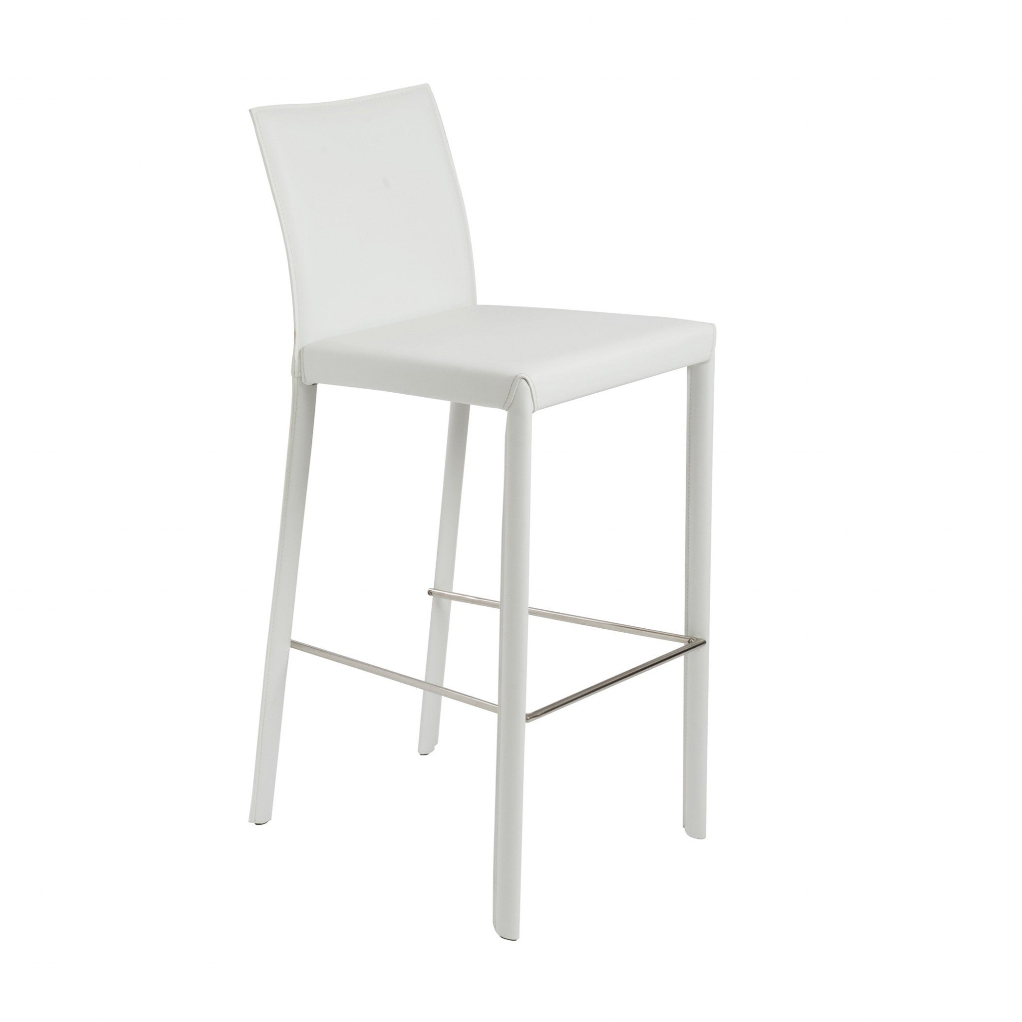 Add a touch of minimalist design and comfort to any dining space in your home with this Set of Two Full Gray Faux Leather Bar Stools. This set has two bar stools made of sturdy solid steel base with a unique design style where the front legs are thinner than the back, and all legs, the frame, seat and backrest are covered in a soft and rich looking faux leather. Too offset the color of the leather there is a stainless stell footrest that wraps around on three sides. These sleek bar stools will look great in your bar lounge area, kitchen, dining room or even as extra seating in your game room. 40.95" H x 17.33" W x 21.07" D