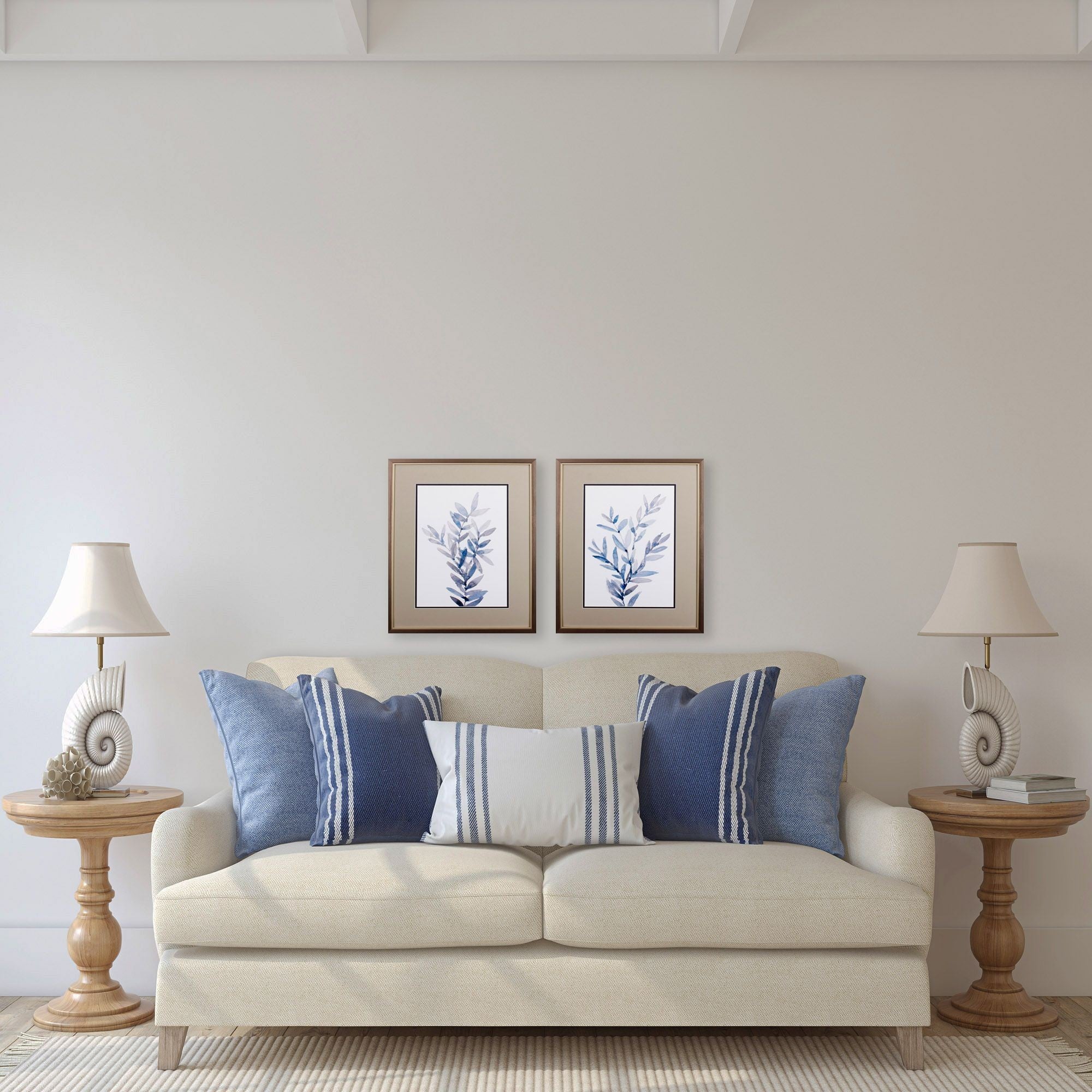 Contemporary and unique, this pair of Navy Plants Watercolor Wall Art will liven up your space. These rectangular prints feature beautiful minimalist watercolor strokes of blues. They are double matted and framed under glass with a metallic frame. The coordinating set can be hung together or used separately as you choose. 25" x 19" x 1" each. Set of 2.