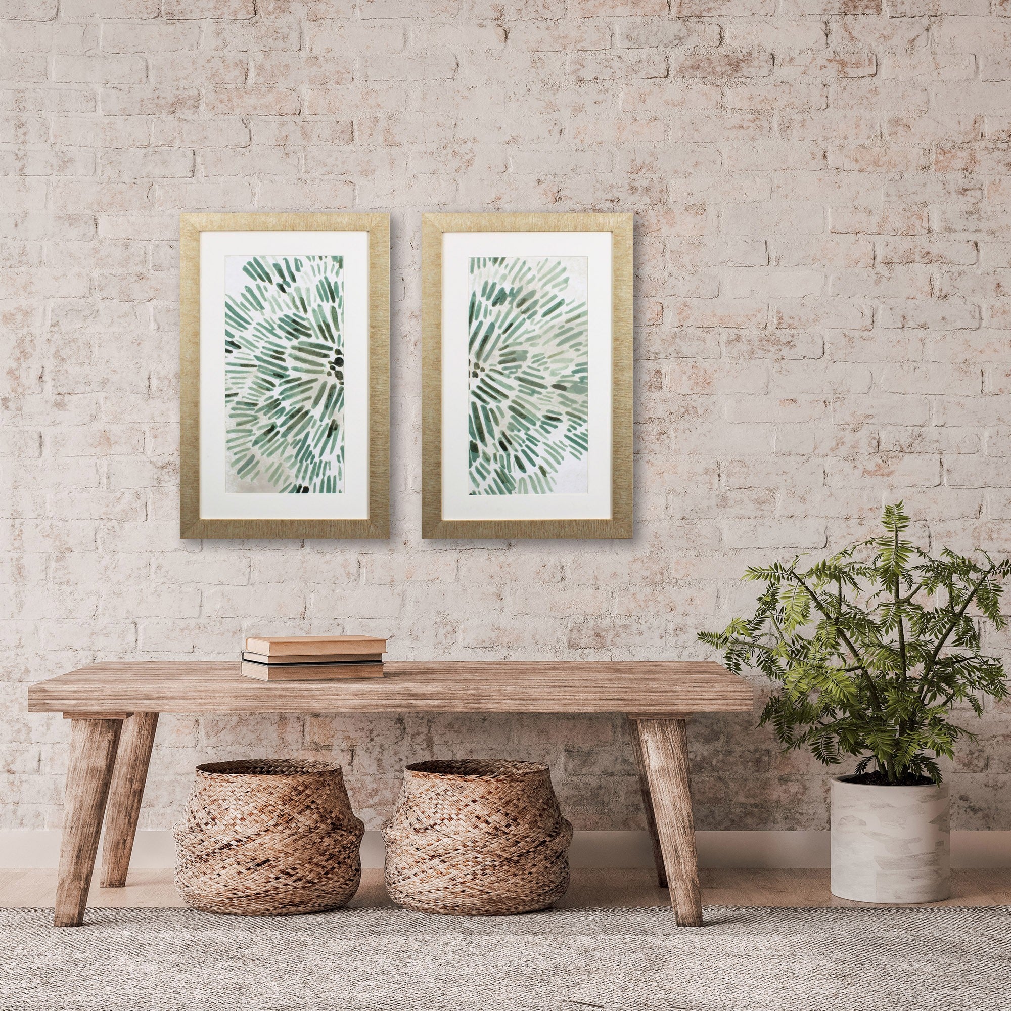 This casually elegant set of Seafoam Green Watercolor Floral Wall Art is a beautiful way to decorate almost any room. Single matted, framed under glass, and complete with a gold frame. The coordinating set can be hung together or used separately as you choose. 33" x 21" x 1" each. Set of 2.