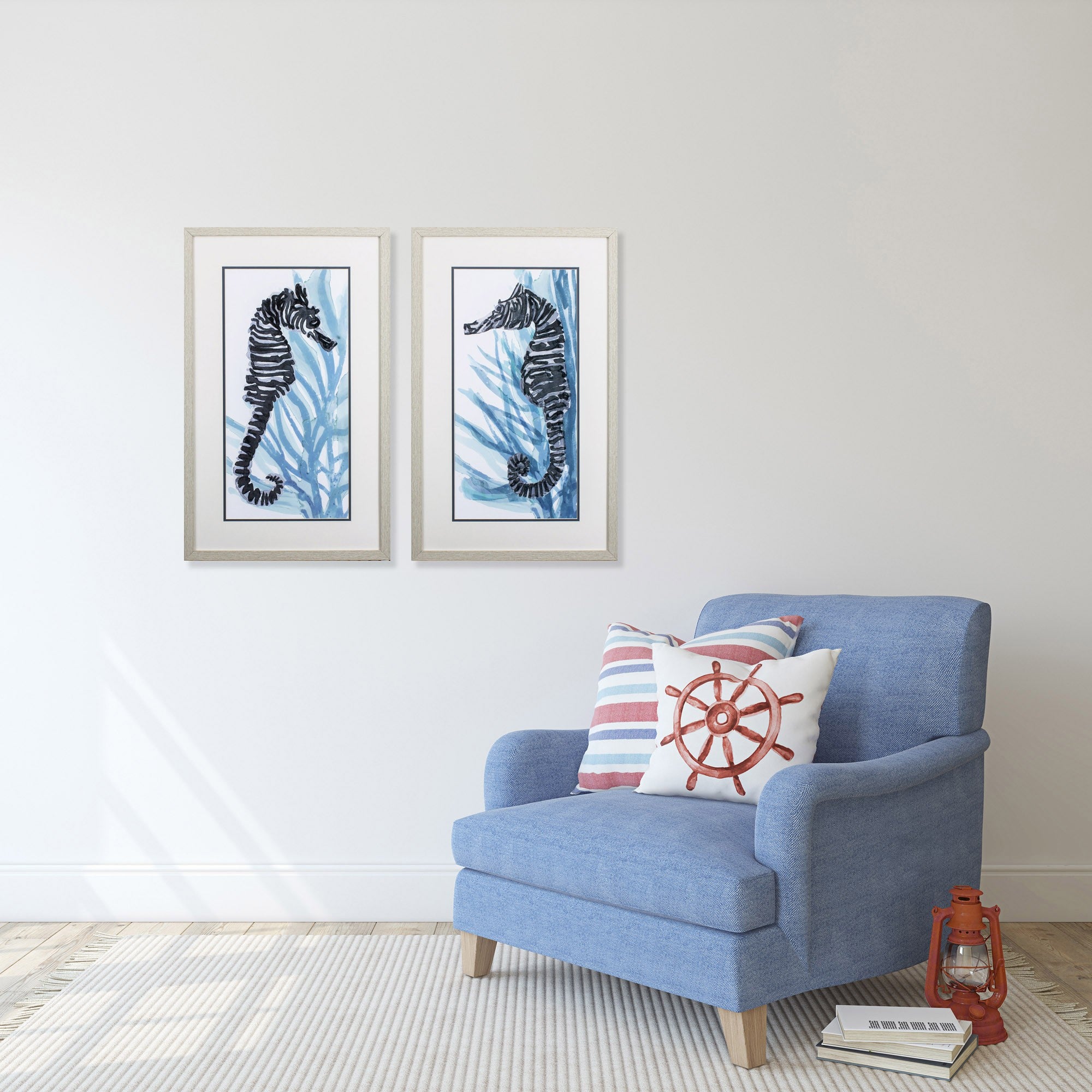 Ocean Seashells Canvas Wall Art is a great way to bring that coastal, tropical, and beach feel into your space. Double matted and framed under glass in a distressed wood frame, this adorable set of seashells will be a great addition to almost any room. The coordinating set can be hung together or used separately as you choose. 31" x 19" x 1" each. Set of 2.