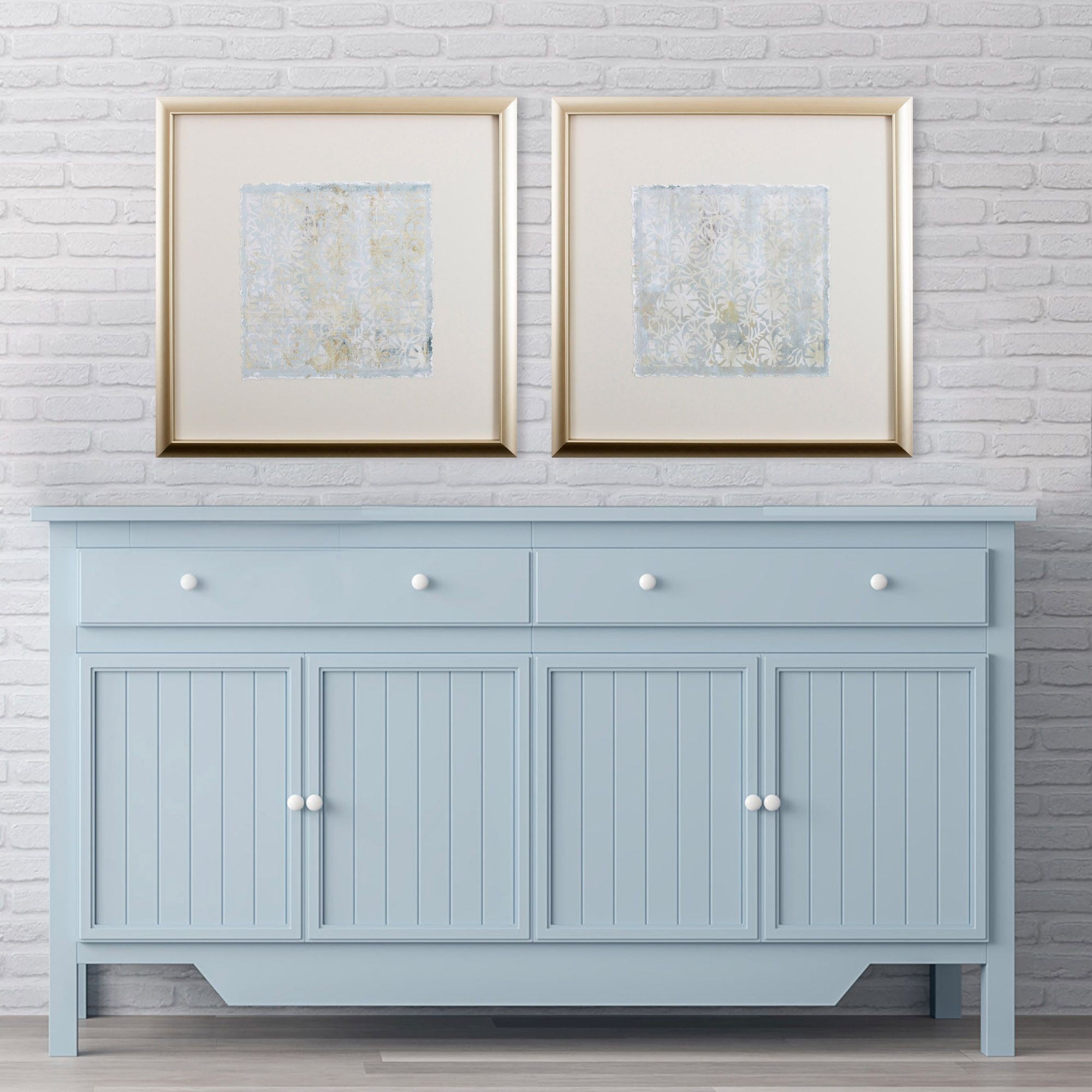 This unique set of Silver and Gold Floral Pattern Wall Art is a beautiful way to decorate almost any room. These prints feature a floral design pattern with a organically shaped deckled edge, framed under glass, and complete with a champagne frame. Neutral colors and an elegant design make this set ideal for living room, dining room, or office. The coordinating set can be hung together or used separately as you choose. 26" x 26" x 2" each. Set of 2.