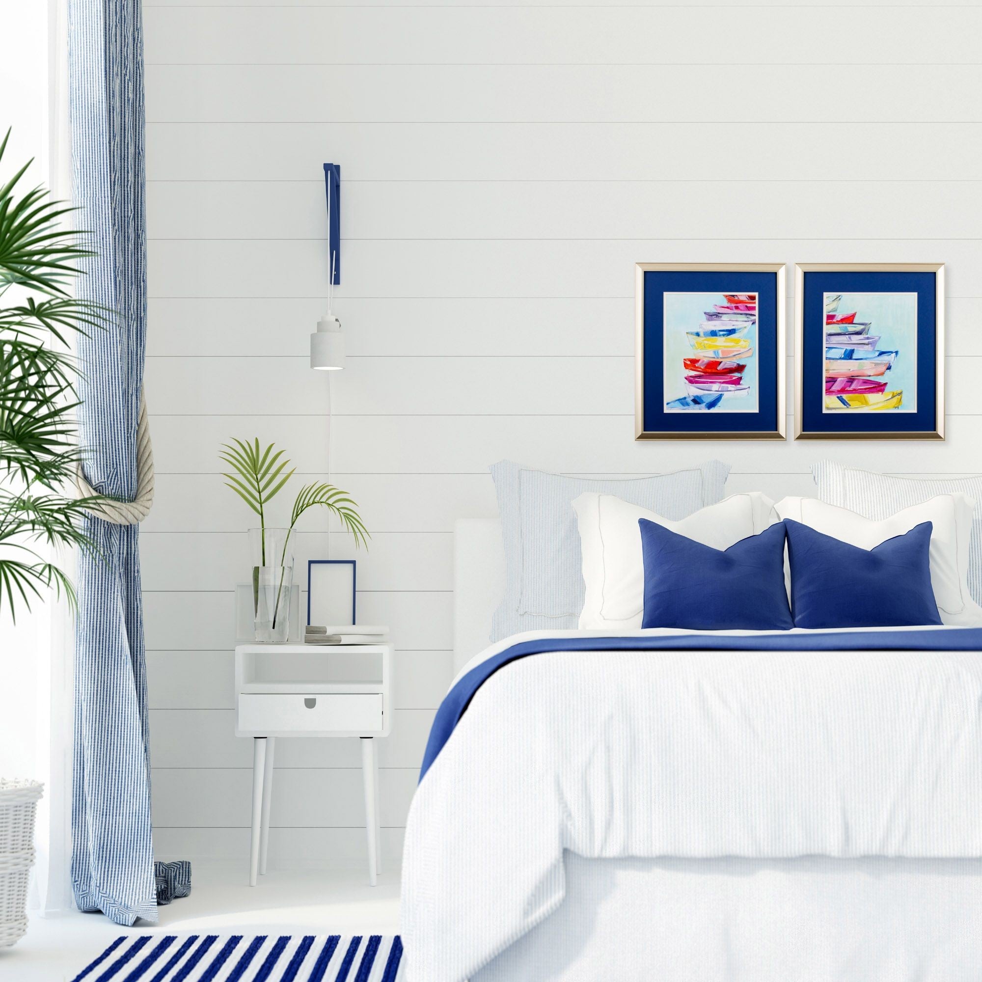 Vibrant Boats Watercolor Wall Art is a great way to bring that coastal, and beach feel into your space. Double matted and framed under glass in a champagne frame, this adorable set of two different arrangements of boats will be a great addition to almost any room. The coordinating set can be hung together or used separately as you choose. 21" x 18" x 1" each. Set of 2.