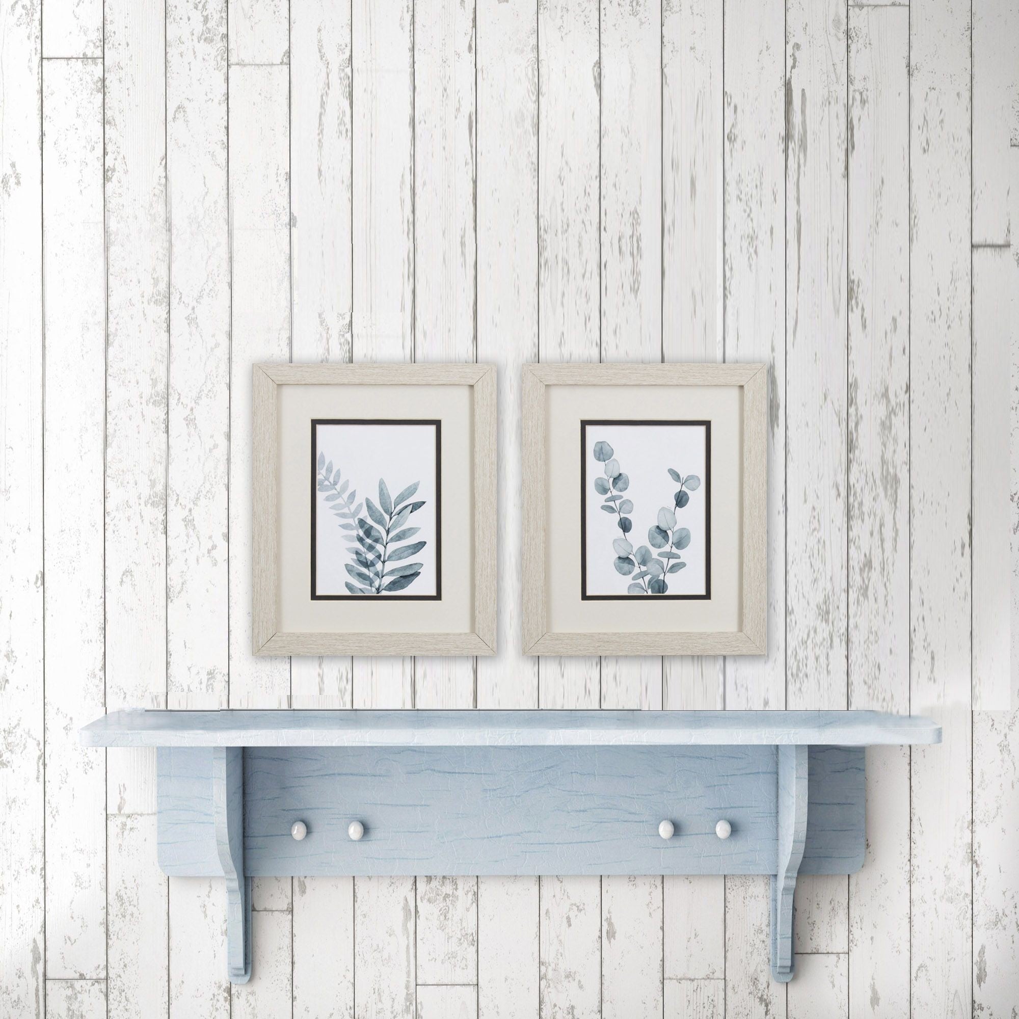 Add some visual interest to your space with this Set of Two Watercolor Navy Leaves Wall Art. Framed under glass in a rustic and distressed wood frame, these modern leave prints are double matted and will look great in almost any room. The coordinating set can be hung together or used separately as you choose. 11" x 9" x 1" each. Set of 2.