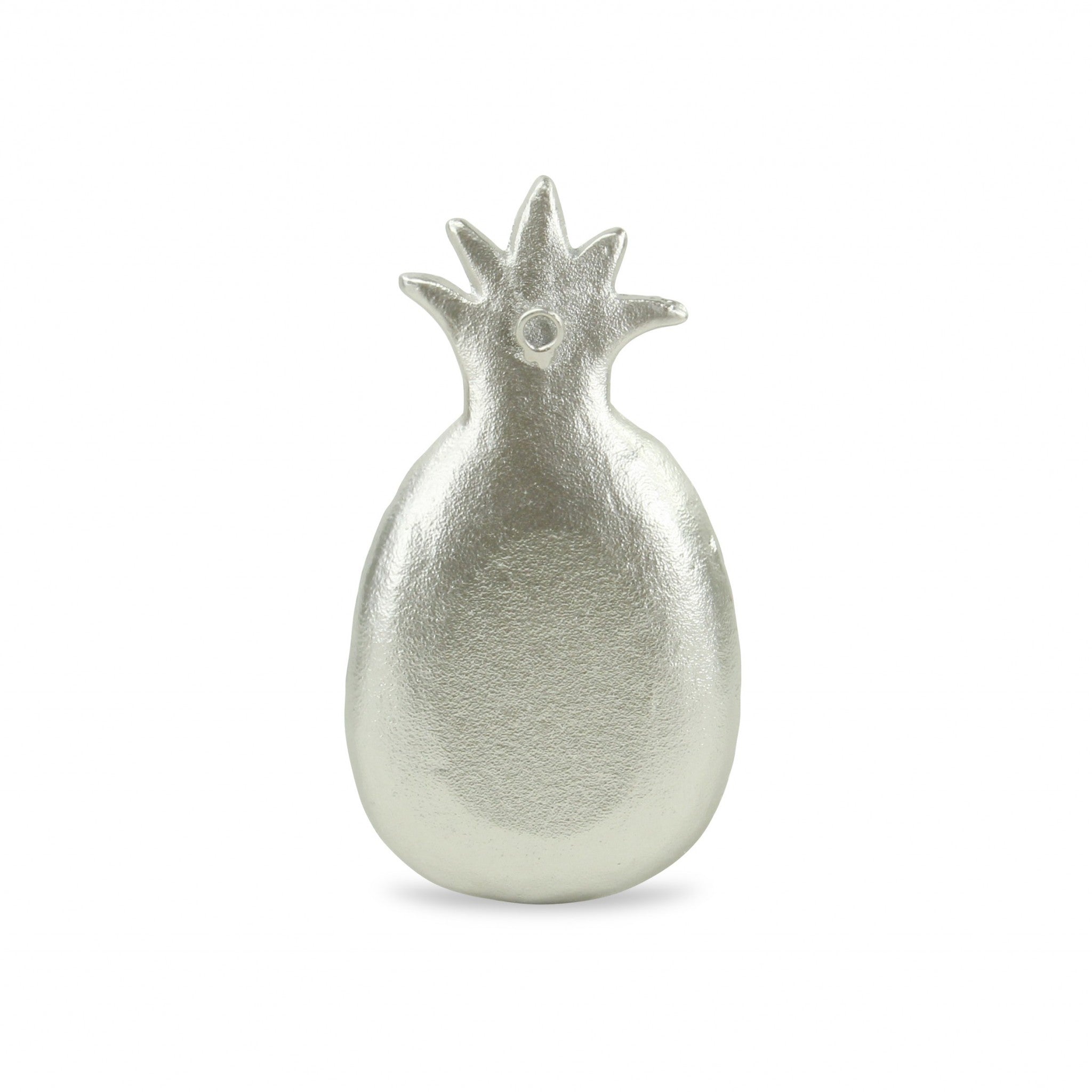Enhance the tropical aspect of your glam space with the Silver Cast Iron Pineapple Centerpiece Shallow Bowl. Polished in a bright silver color, this unique piece is representative of hospitality as the pineapple is the international sign of welcome. The pineapple shaped dish makes an excellent addition to your mantel and desks or even your kitchen counter for those immediate keepsakes. 1" x 9.5" x 5.25"