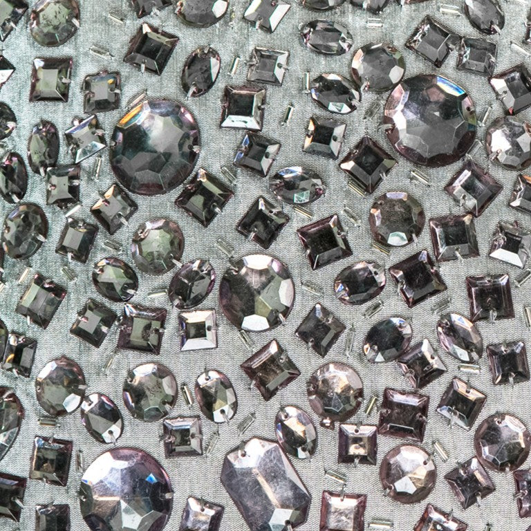 Give your modern living space an eye-catching centerpiece with this Sparkly Glam Faux Crystal Jewels Beading throw Pillow that will set a glamorous tone to your interior décor. Brimming with hand-applied crystal beads in eclectic shapes and sizes over a silver-gray base, creating complex refraction of light to allure the gaze of the guests. The subtle sheen of the solid gray back adds to a plush appearance while the hidden zipper closure ensures a seamless finish, making the pillow easy to clean. Not to mention, the knife edging accentuates a clean and polished look to give the pillow a sophisticated modern look. The alluring jewel beads and dazzling beauty of this decorative throw pillow will add a touch of glam to your living room and be an ideal companion to neutral-toned decors. 12” x 12” x 6.25”