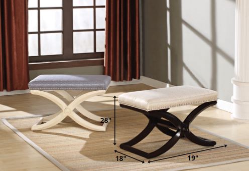Stool, Antique White & Blue Seat - Schima Superba, Ca Foam, Antique White & Blue Seat