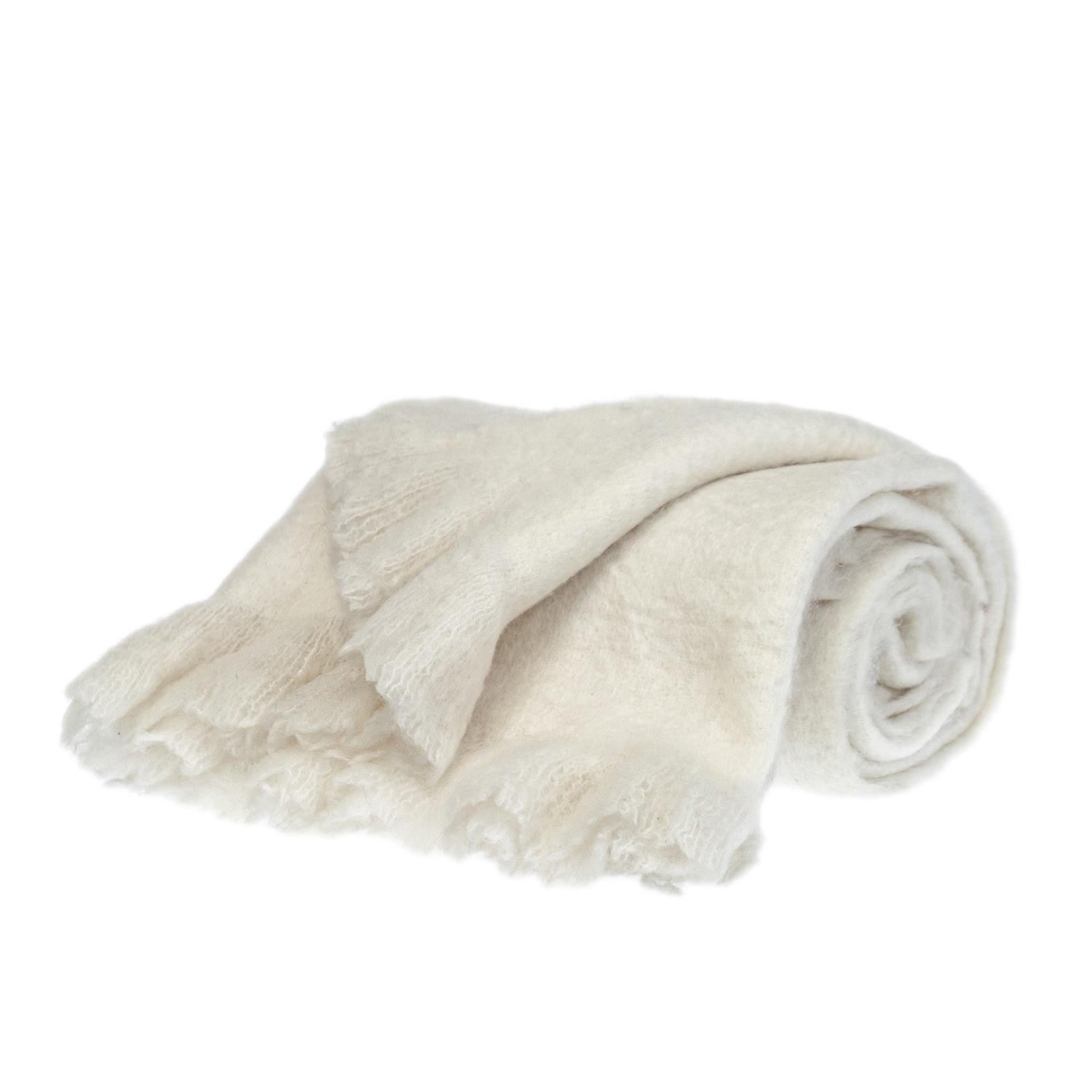 Feel luxurious with comfort and warmth from this Supreme Soft White Handloomed Throw Blanket. Hand-crafted by expert artisans, this soft and cuddly wool blend blanket with a thin fringe is an ideal way to accent your space and keep warm at the same time. The gorgeous white color displays simplicity but makes your space look more expensive. Perfect for your bed, couch, or favorite spot by the fireplace, this generous in size and fashionable throw blanket is a soft and natural way to accent your room. 67" x 52" x .5".