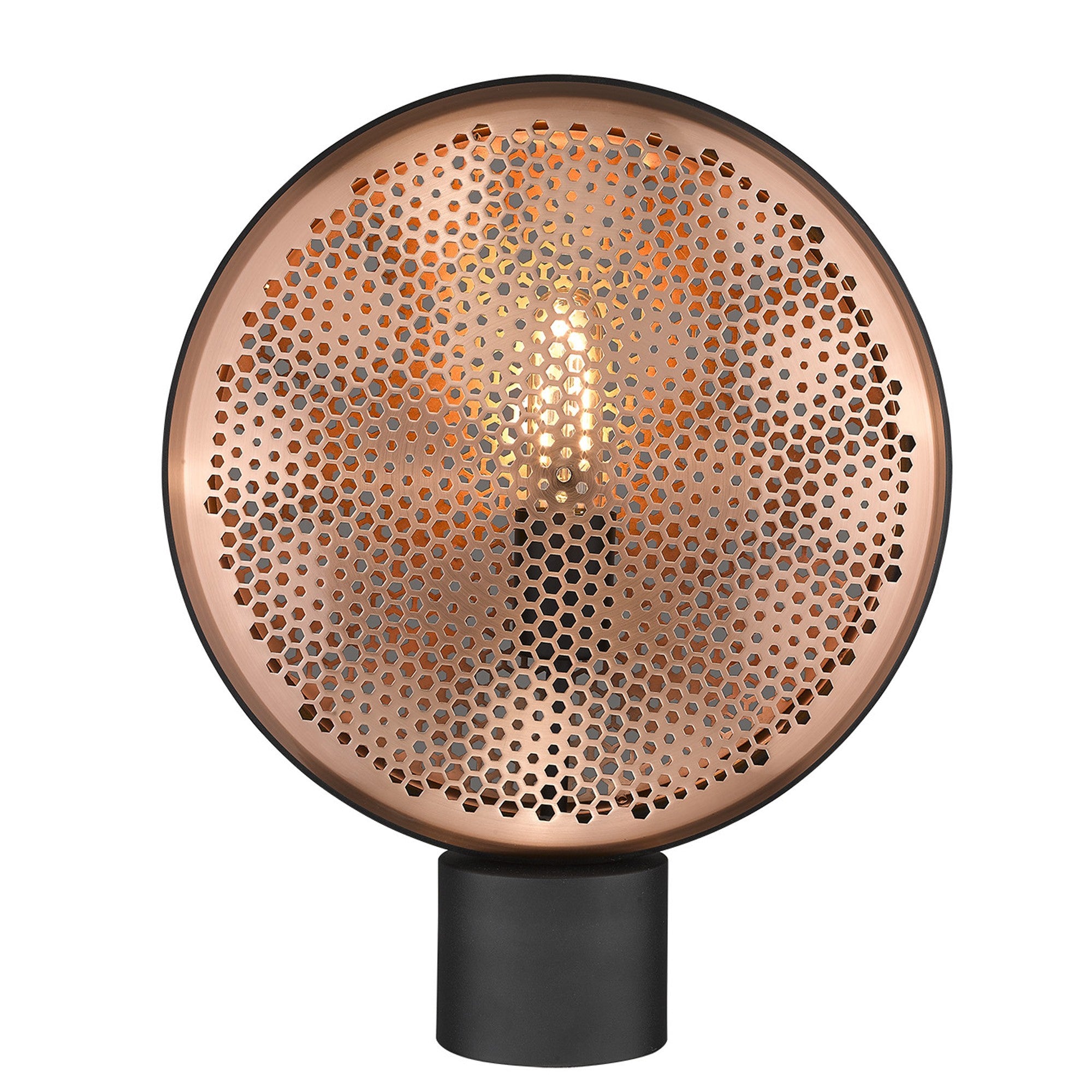 Add funky style to your home with the Tholos collection of lighting. Tholos features a playful design that's defined by honeycomb design lamp covers on large lamp heads. Available in white with gold accents and black with copper accents.