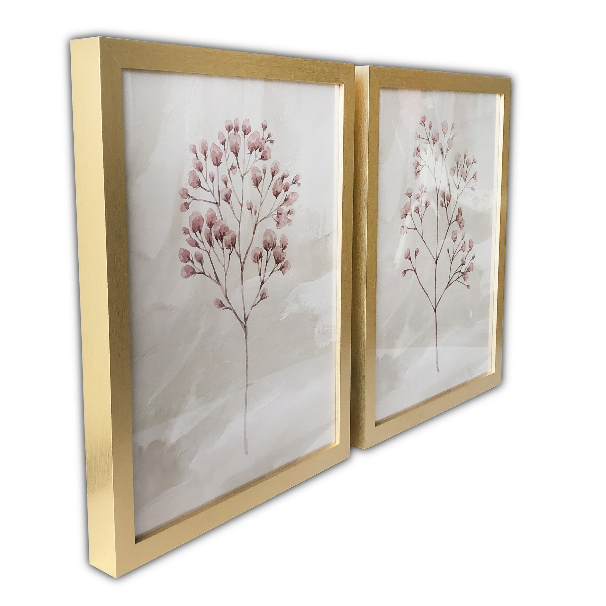 ThisTwo Piece Blush Pink Branch Framed Wall Art is the perfect collection of artwork for any room that needs an added element of décor and beauty to the wall space. The soft and subtle pink blossom branches make for a modern and contemporary aesthetic, offering aTwo piece imagery of beautiful, individual tree branches from nature. The naturally enchanting and delicate details of the blossoms are accented with a premium metallic gold framing, adding to the stylish and modern look of theTwo piece collection. 20" x 32" x 1.37"