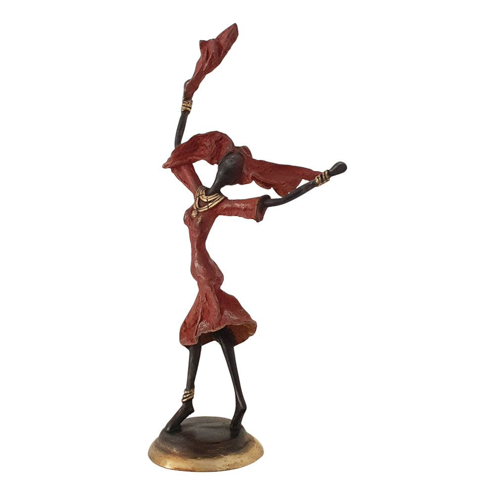 Decorate your living or bedroom with this West African hand-cast bronze statuette of a classy and sophisticated African dancer in a fire red dress. This piece will not only uplift the spirit of your room but will also add a tone of vintage and traditional through the ancient technique of Lost Wax bronze hand casting used.