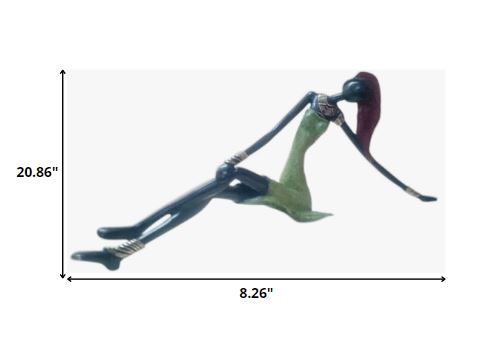 An exquisite vintage hand cast solid bronze exotic female figurine of an African woman in a gorgeous posture and an unconventional dress, is an unconventional representation of a modern African woman, in her true splendor, elegance, and style. It salutes the transforming spirit of Africa, focused on the development of women in all fields.