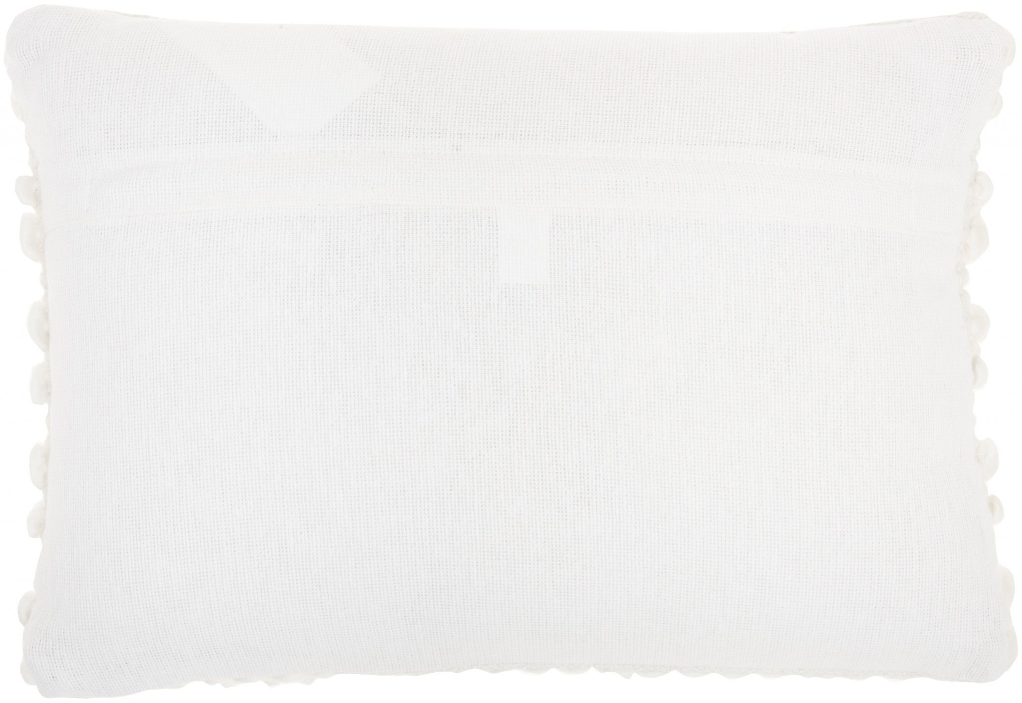 Add a touch of unique design and comfort to any seating space in your home with this White Pom-Pom Detailed Lumbar Pillow. This pillow has a rectangular shape with a hidden zip closure at the back for a seamless look. The cover is covered in a white colored fabric which has a striped design on top of it. There are two designs in the stripes with one stripe with an embroidered pattern and one stripe with a textured small pop-pom pattern. These stripes alternate and give a very textured feel to the pillow. You can use this pillow anywhere in your home and it will work with any existing colors or decor style you already have, You can use this pillow to elevate the look of your bed, your couch, or your favorite chair. This lumbar pillow also provides excellent back support. 5" H x 14" W x 20" D