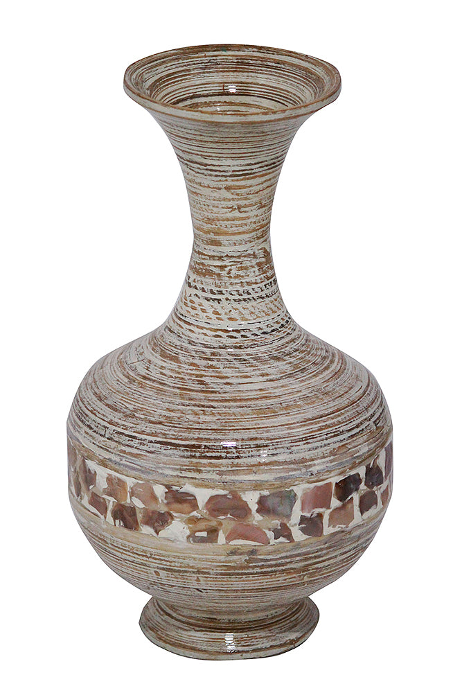 Zoe Distressed White and Natural with Coconut Shell Spun Bamboo Vase