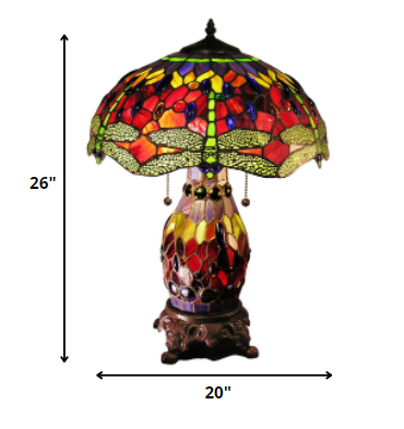 This is a gorgeous, tiffany-style table lamp with a light base enabling a more luminous effect in your home. This definitely fits in your bed room, living room and even in your hallway. Its rich colors on the shade reflects the light beautifully.